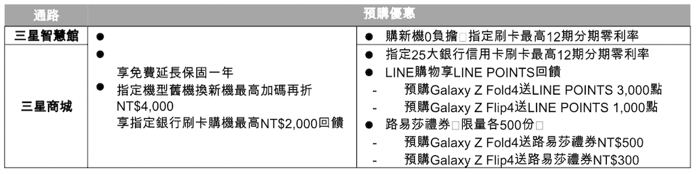 – Galaxy Z Fold4 送 NT$3,000 禮券。