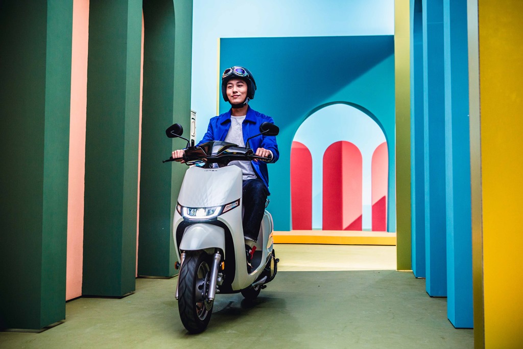 與永續設計師 JUST IN XX 周裕穎攜手推出聯名永續服飾,將製造機車所產生的廢料回收再利用,共同為 10 月在高雄舉辦的台灣設計展揭開序幕。