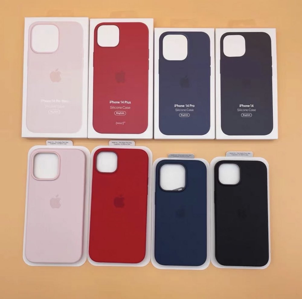 有趣的是在釋出的保護殼中包括了 iPhone 14 Pro Max、iPhone 14 Plus、iPhone 14 Pro 與 iPhone 14 4 種尺寸,保護殼盒裝與背面也都有 Apple Logo,包裝上更是像極了官方的產品,不過發帖者表示這些僅是與正品「看起來最相似的複製品」,因此無法藉此確認官方是否將會使用這些顏色唷!