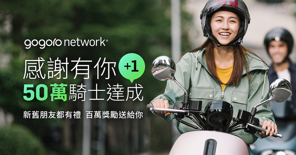 迎接電動機車黃金年代,Gogoro Network 也邀請更多消費者一起加入 PBGN 交換電池的行列,與上述活動同步推出「50 萬再 +1,每月輕鬆騎」活動,活動期間凡購買任一款 PBGN 智慧電動機車且付清車款,完成購車後登錄活動表單,即可參與購車「每月資費現折 200 元 x 連續 50 個月」的抽獎活動,活動將於 9/27 抽出 50 位幸運新車主,贈送總額高達 50 萬的資費折抵。