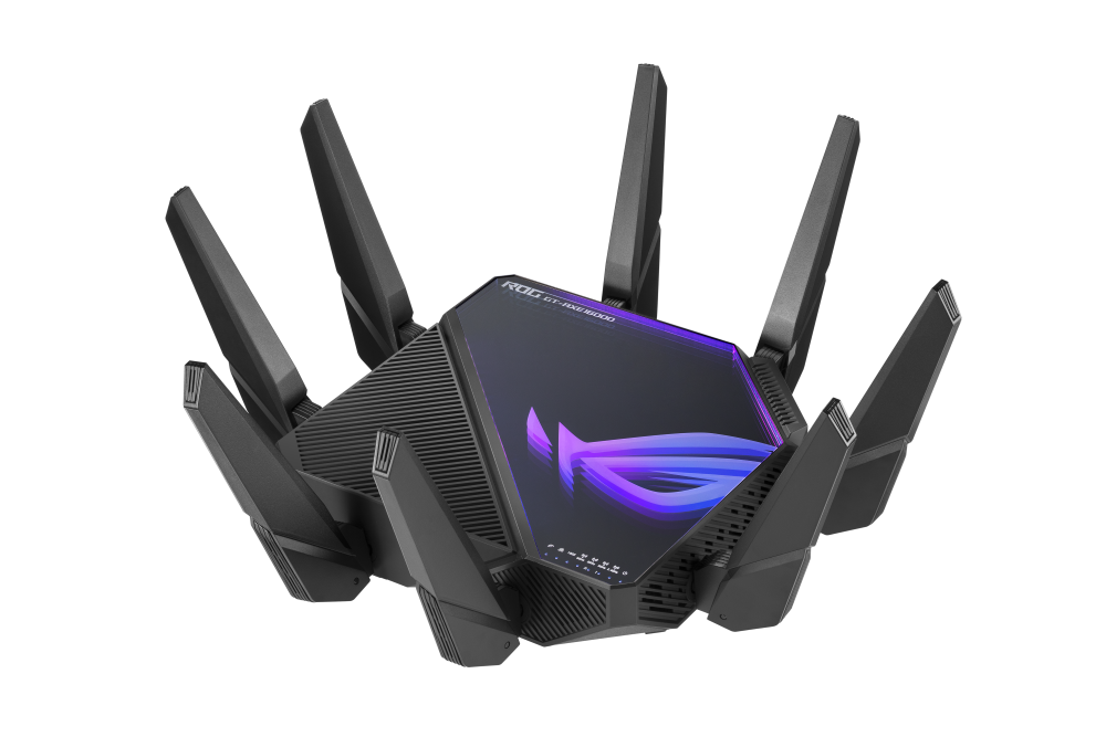 ROG Rapture GT-AXE16000為全球首款四頻 WiFi 6E 電競無線路由器,採用全新一代旗艦 Broadcom WiFi 晶片組、2.0 GHz 四核 64 位元 CPU,可大幅提升連網效能。GT-AXE16000配備華碩射頻技術和獨家 RangeBoost Plus,並透過多項升級功能提高整體 WiFi 覆蓋範圍,搭配 WiFi 6E 終端設備,玩家即可使用全新的 6 GHz 頻段,發揮最高連網效益。GT-AXE16000 另搭載兩組10 Gbps WAN/LAN 連接埠、四組 1 Gbps LAN 連接埠和一組支援鏈路聚合和負載平衡的 2.5 Gbps WAN 連接埠,以實現超高速連線;此外,還具備三段式遊戲加速功能,可大幅優化遊戲連線速率,讓玩家隨時贏在起跑點!