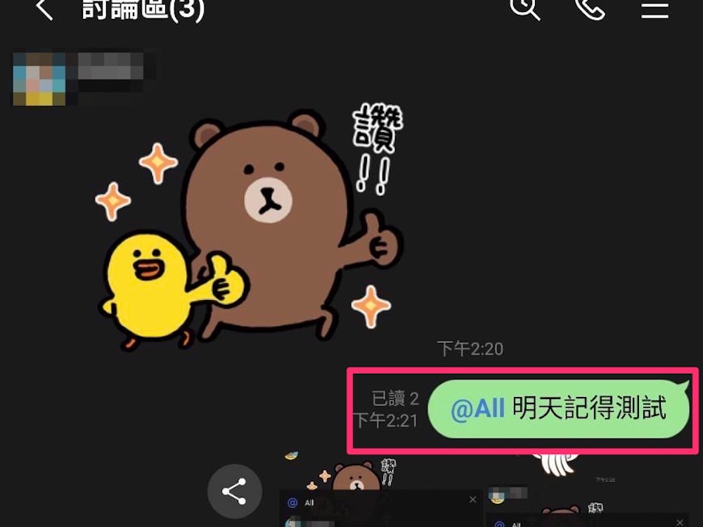 不過 iOS 用戶也別高興得太早,因為若是 Android 用戶的朋友在群組中使用「@All」,iOS 也是會被 tag 到,只是 iOS 用戶無法主動「@All」tag 大家唷!