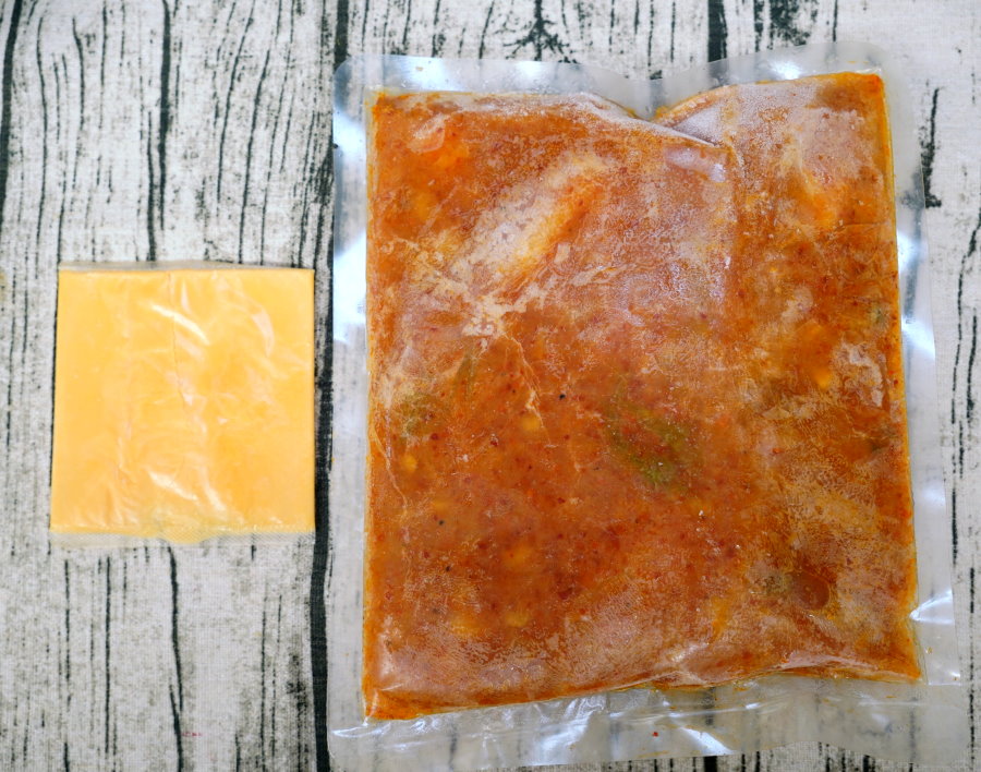 ▼內容物為一包韓式火鍋湯底、德國香濃起司片,湯底包解凍後拆袋倒入鍋中,加熱3分鐘即可享用~~