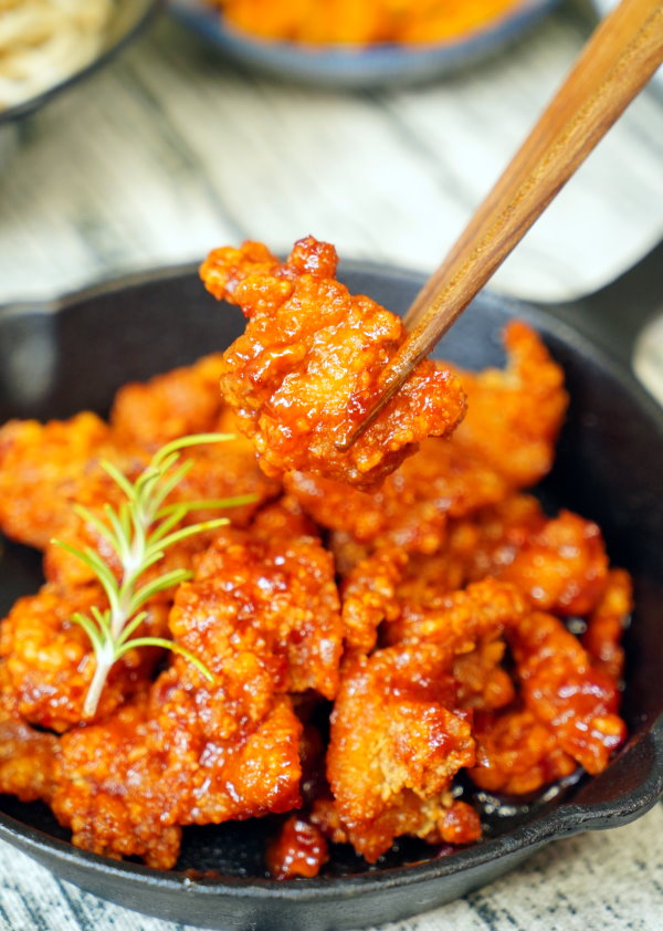 ▼將韓式炸雞裝盤後,再放上迷迭香,在家裡享用也很有儀式感!