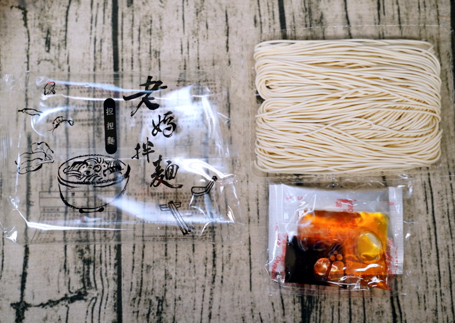 ▼打開裡頭包含一塊麵體、辣油包、醬油包、芝麻醬包、調味粉包,煮法也很簡單,將麵燙熟後再依序加醬料攪拌均勻即可上桌!
