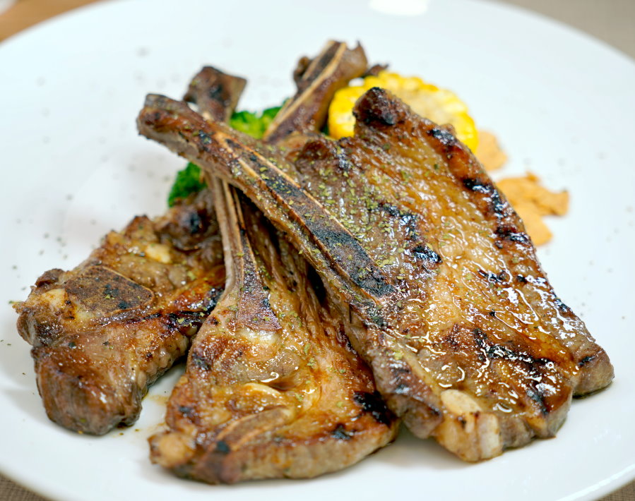 ▼上頭同樣帶有迷人烙痕,戰斧豬排搭配獨特醃料與炙烤的香氣,吃起來甜嫩香彈又滿足,咀嚼起來絲毫不費力,很適合推薦給不吃牛的朋友!