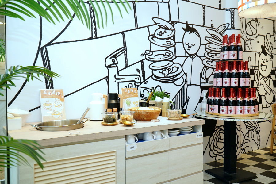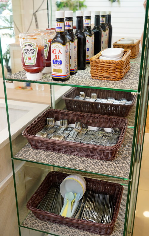 ▼一旁還有醬料、餐具自助區,就連兒童餐具也有,帶小朋友來也不用擔心!
