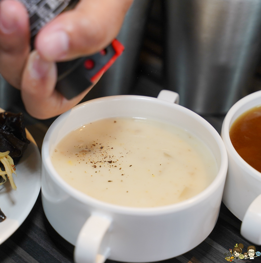 桌面上都會有鹽巴、胡椒鹽,玉米濃湯可以搭一點現研磨黑胡椒提味