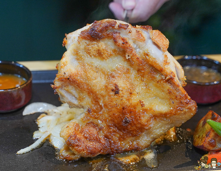 保有金黃色澤,肉質軟q好咀嚼,香甜好吃雞腿排