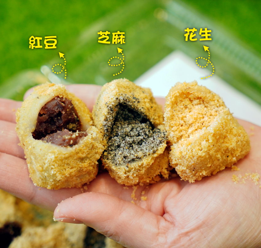 ▼芝麻口味,吃起來帶有芝麻的香醇而沒有苦味,搭配微糖粒的口感整個甜度很剛好,口感也不會過乾不好吞嚥,加上軟Q有嚼感的麻糬與外層花生粉更是超級合拍!紅豆口味,不得不說紅豆是我們平常比較少會主動點選的口味,但他們家的紅豆不僅綿密香甜,而且還吃得到微微顆粒口感,微甜不膩的滋味,搭配Q軟有嚼勁的麻糬也很可以,尤其搭配紫米麻糬格外好吃,大家一定要試試!