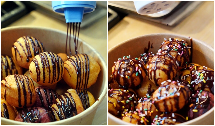 ▼想要來點變化也沒問題,建議一開始可以先來個撒粉地瓜球,我們選的是甘梅粉、巧克力粉,都是很受歡迎的口味!甘梅粉吃起來帶點甘香酸甜,搭配香甜的地瓜球整個很合拍,就好像是甘梅薯條一樣對味!巧克力粉更別說了,香甜的地瓜香氣搭配微甜的巧克力香味,整個香氣堆疊上去更是不得了,也榮登小口愛喜愛的第一名口味(笑)!