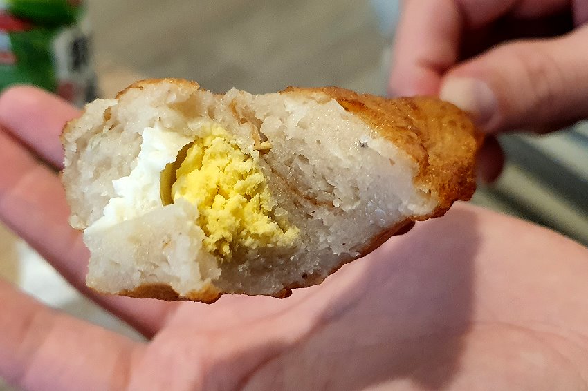 ▼口感較為紮實Q彈,裡頭也有包裹水煮蛋,真的是照了放大燈的旗魚黑輪啊(笑)!可惜吃起來口感比較硬彈,沒有南部的好吃,不過搭配胡椒鹽也還算可以接受!