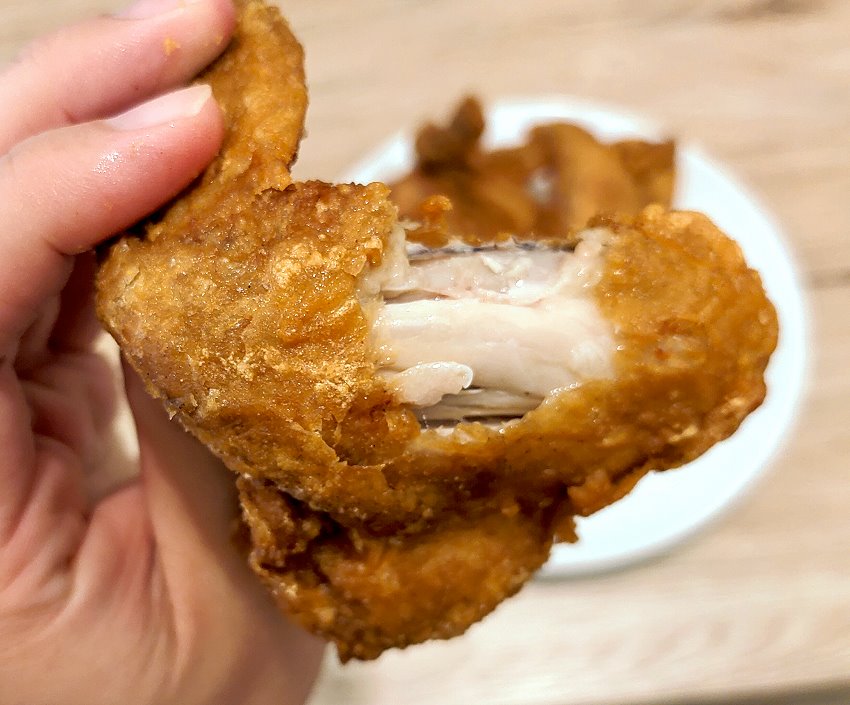▼雞塊個頭都不小,而且幾乎都沒什麼骨頭,一份約有6~7塊!吃起來外皮香酥,裡頭非常厚實飽滿,吃起來也不會過於乾柴~