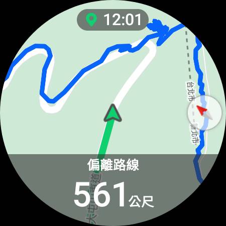 [偏離路線會用綠色顯示,以及自己偏離路線的距離]