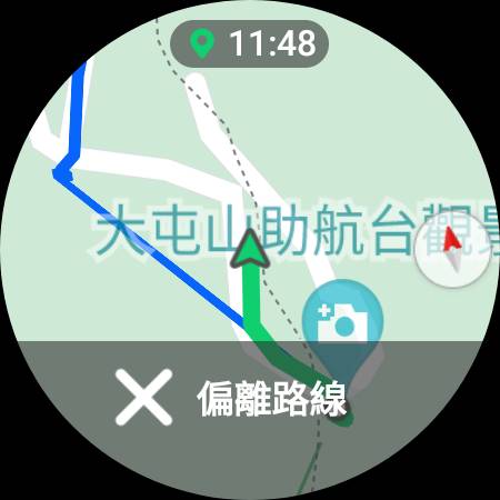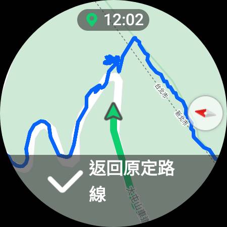 [返回路線 – 當所走的方向回到原本 GPX 地圖所規劃的路線時,也會通知已經返回原定路線]