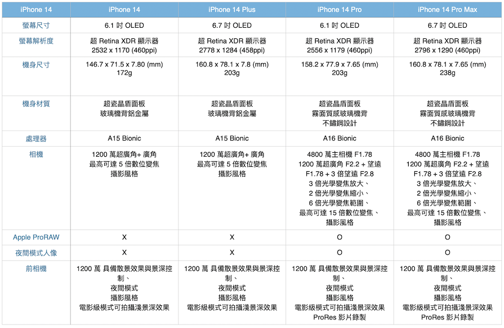 Apple 正式宣佈推出 iPhone 14 系列新機,分別有 iPhone 14、iPhone 14 Plus、iPhone 14 Pro 與 iPhone 14 Pro Max 4 款,並預計 9 月 9 日晚間 8:00 開放預訂,最快 9 月 16 日開賣。這邊我們也整理了台灣上市售價、預購資訊與規格比較整理給大家參考!