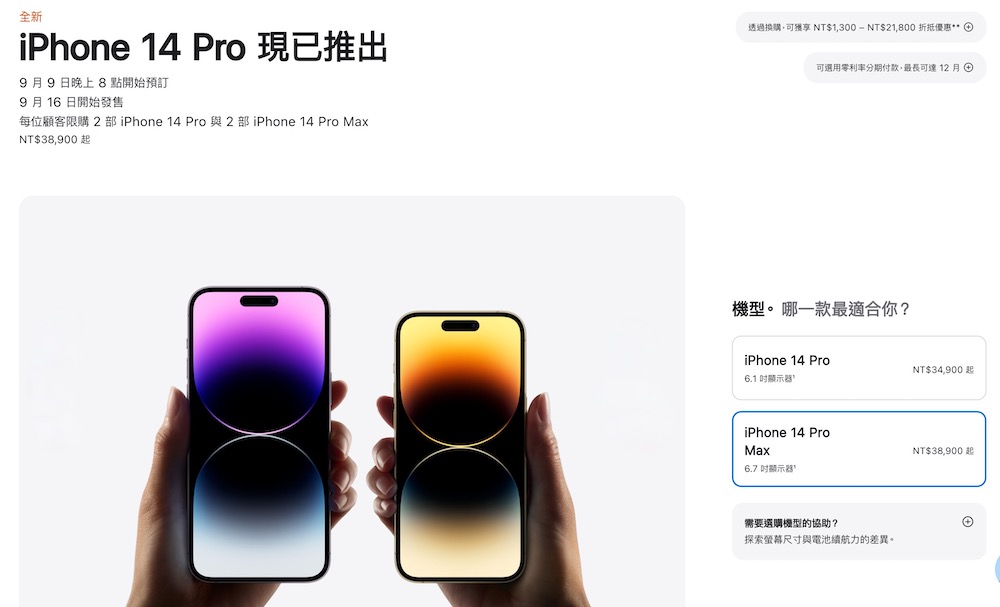 每個 Apple 帳號限購 2 部 iPhone 14 Pro 與 2 部 iPhone 14 Pro Max