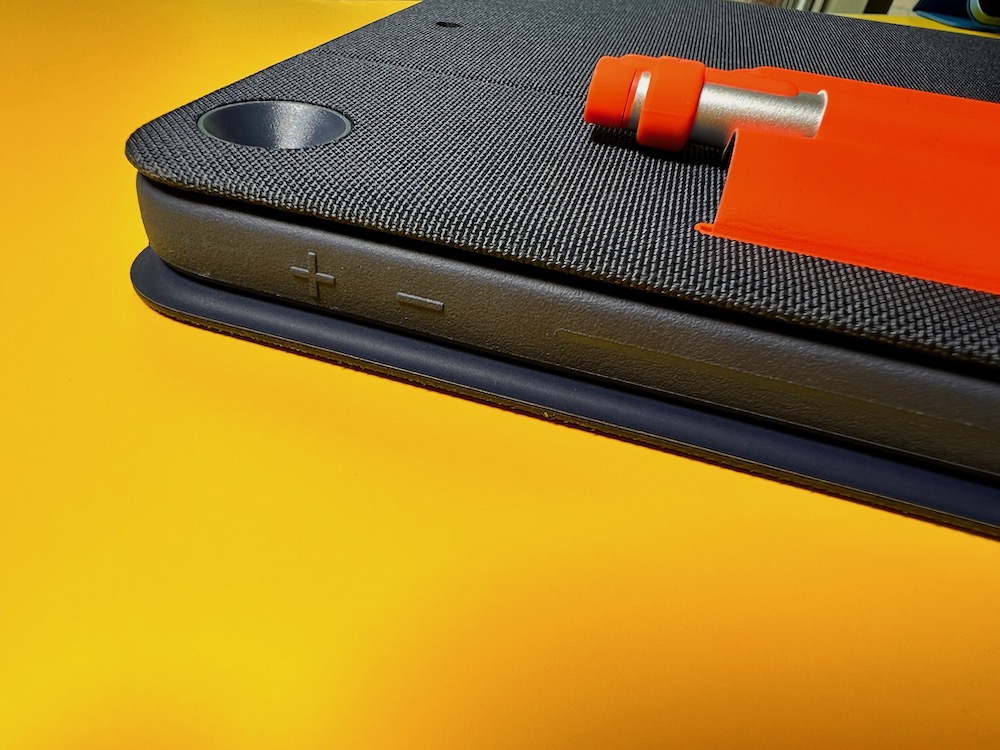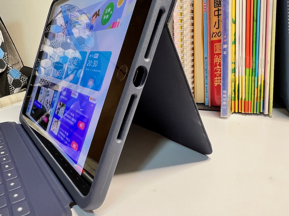 保護殼對平板有著厚厚與緊密的保護,該留的孔位也不馬虎,尤其是音量鍵還貼心的印上「+」、「-」 ,讓小孩在使用上更容易不搞混。