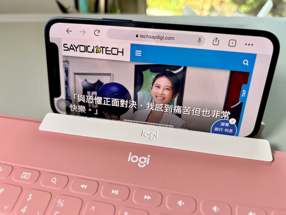 除了小孩平板專屬的保護殼與觸控筆,這次 Logitech 還有一款「KEYS-TO-GO 輕巧藍牙鍵盤」,重量僅有 180g,只比一包 110 抽的抽取式衛生紙(147.5g)重一點點,而且打字的時候還相當安靜。而且還相當貼心的附上直立支架,可以輕鬆的與鍵盤嵌合後把手機放上去!
