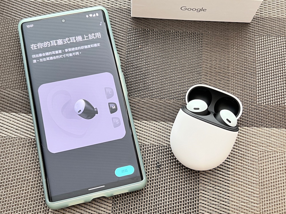 接下來就會透過 Pixel Buds 應用程式來調整並測試耳塞的密合度,系統還會播放一段 20 秒左右的音訊樣本,來確認 Pixel Buds Pro 耳塞在我們的耳朵上有沒有達到最佳效果。