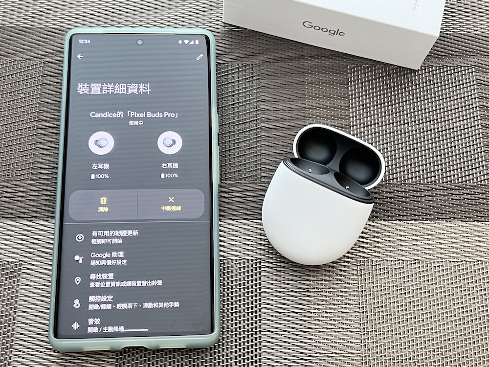 充電盒背面還有一個配對用的按鈕,只要把 Pixel Buds Pro 戴上耳機一兩秒左右,耳機就會自動連線上設備。
