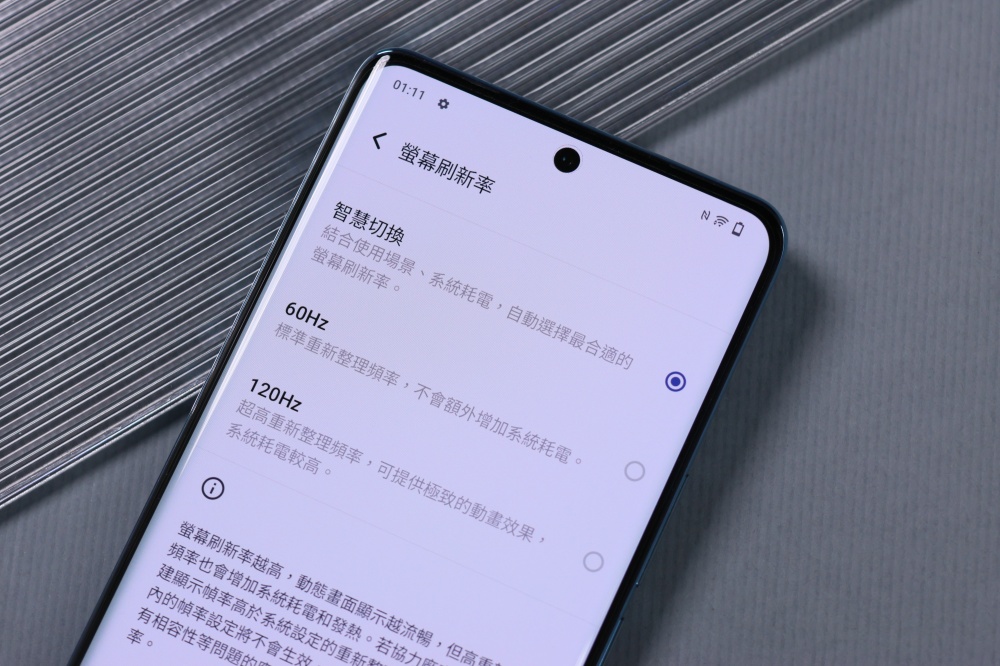 vivo V25 Pro 是 V 系列首款升級採用 120Hz 雙曲面螢幕的機種,120Hz 高更新率的優勢在於快速滑動螢幕時幾乎沒有殘影,有著非常流暢的顯示效果。如果擔心 120Hz 更新率太耗電的話,也可以改用 60Hz 螢幕更新率,或是使用智慧切換功能讓手機自動判斷該用什麼更新率。