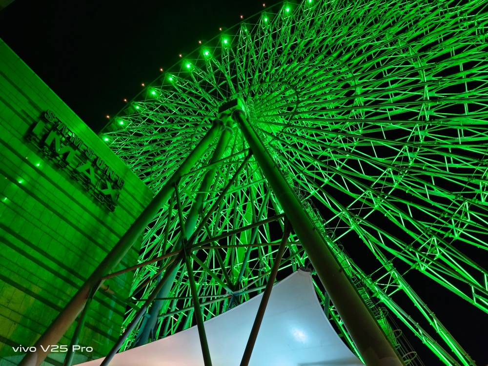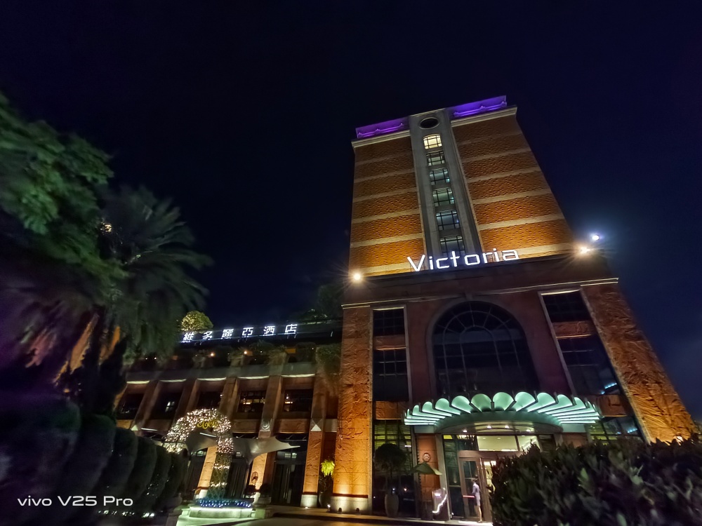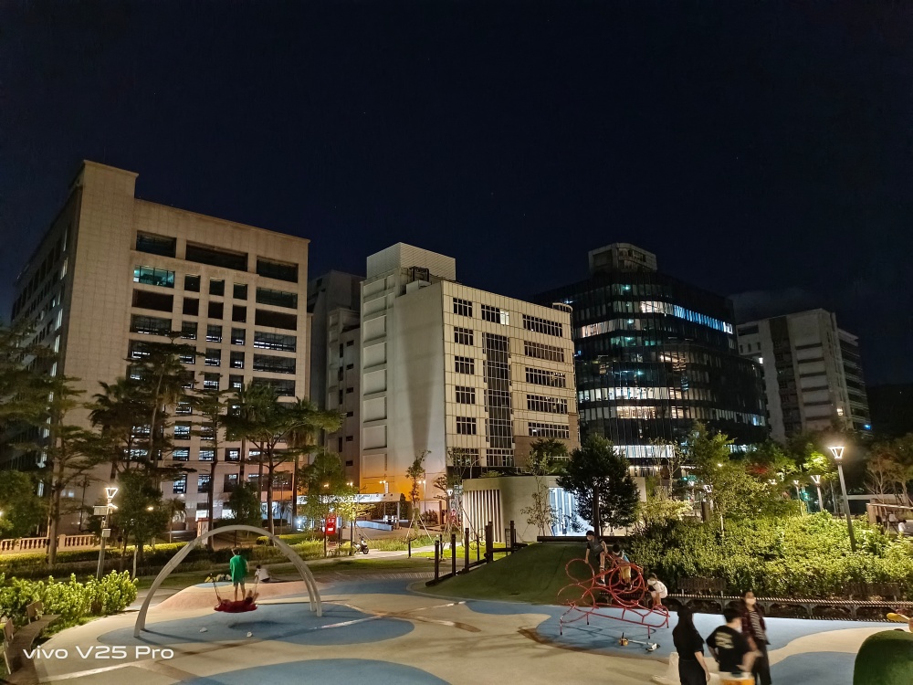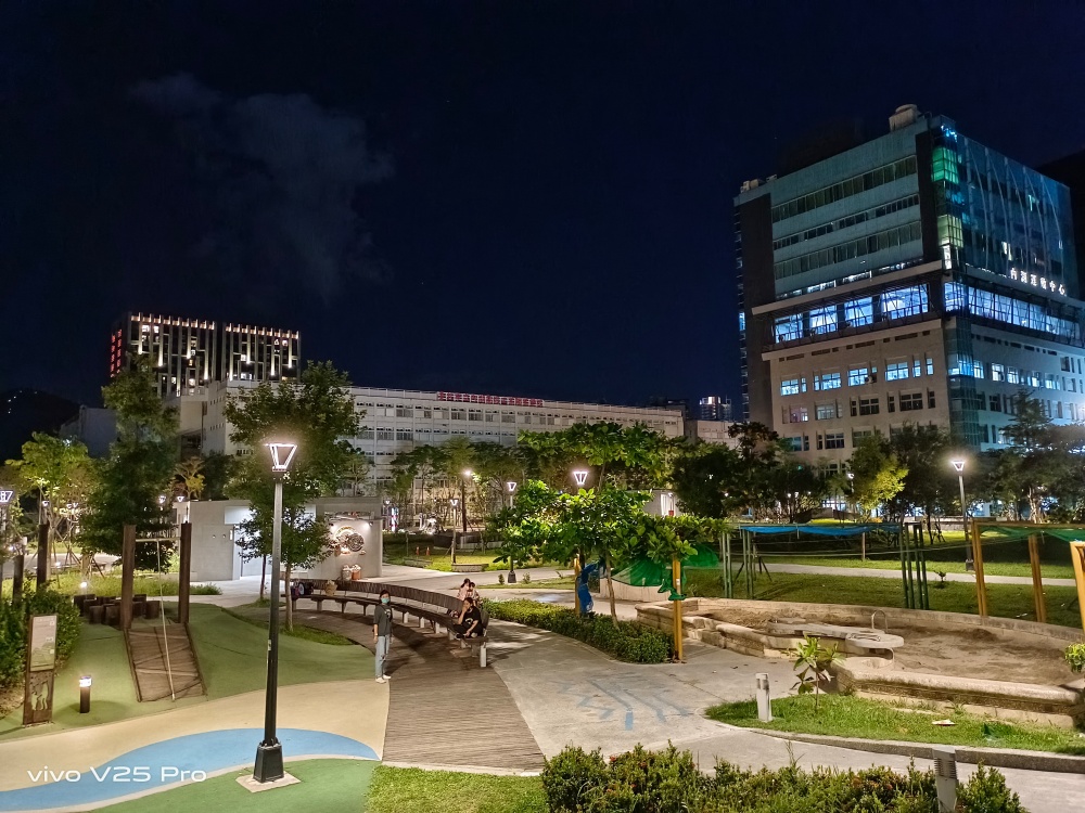 夜景拍攝也是 vivo V25 Pro 的強項,因為具備了較大的感光元件,即使沒有特別開啟夜景模式拍出來的照片就還滿清晰的,不過如果是在超昏暗的環境下拍攝,就可以借助夜景模式的演算法,透過多張疊合的方式來拍出明亮清晰的照片。