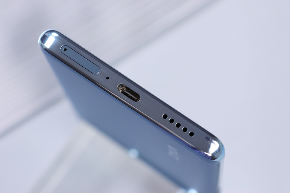 底部有 SIM 卡槽、Type-C 連接埠、喇叭孔配置。