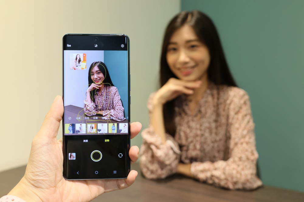 想不到拍攝姿勢也沒關係,內建豐富的姿勢「導師」可以讓你直接跟著手機的引導拍出不一樣的 pose,我覺得這個功能真的超棒,有時候自拍沒靈感、或是多人合照沒想法時,就直接開啟姿勢功能就能無腦跟著拍,拍出來還很好看,真是超方便。