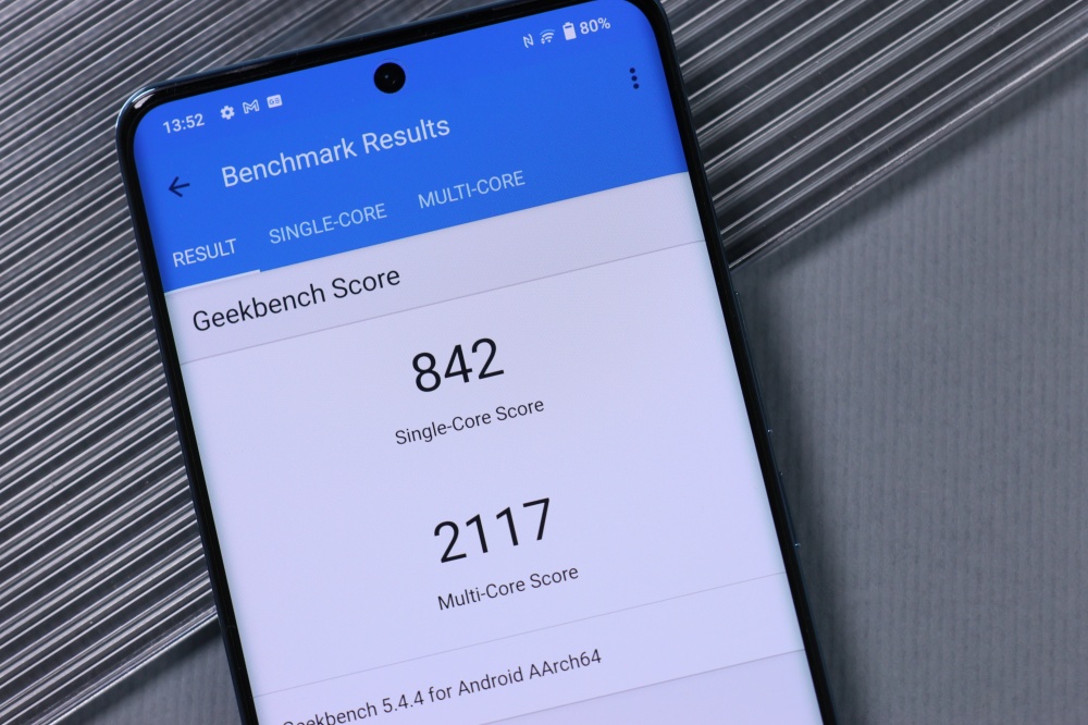 Geekbench 5 的測試成績也屬中高階水準,單核達到 842 分,多核達到 2,117 分。就日常使用來說,不論是上網純瀏覽資訊、使用各大熱門的社交平台,玩玩遊戲或是用來多工工作,整體使用體驗都還滿順暢的。