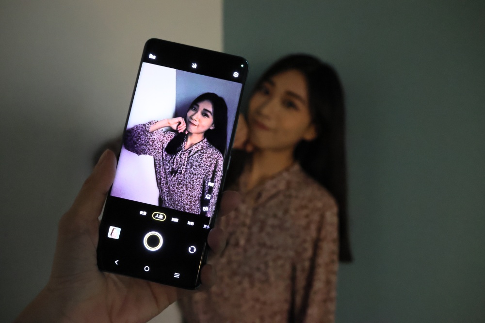 另外,前鏡頭自拍時也能套用景深虛化效果,即使自拍背景比較雜亂,或是單純想要凸顯自己的話,都可以快速套用,還可以調整虛化模式,達到最適合的景深感覺。