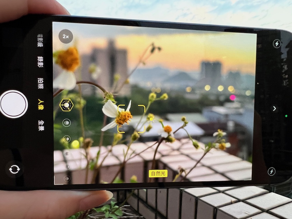 元件中央的 1,200 萬像素拍攝全解析度照片和 4K 影片。2 倍望遠鏡頭選項除了支援一般拍照,在人像模式中也是可以使用,再搭配上可以手動調整自己想要的前後景深,的確能讓用戶在拍照的時後有了更多的靈活運用。