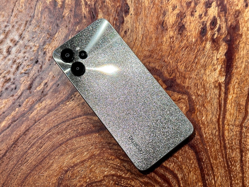 realme 9i 5G 外型上設計採用目前最受歡迎的 2D 邊框設計,平滑的一體式背蓋在保持手機整體性的同時,也更加突出星光粒子的設計,並在不同光源下呈現或金或銀的不同面貌。