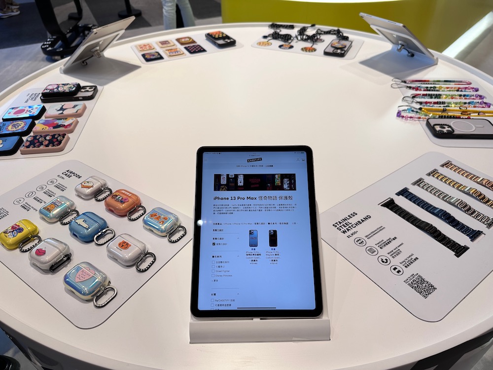 成立於 2011 年的 CASETiFY 繼香港、日本、韓國等亞洲地區,終於要在 22 日於台灣正式亮相,位於 A11 1 樓的店面,融合了 CASETiFY 的品牌視覺設計,有著經典元素與活潑調性。除了牆上有著各種風格的手機保護殼、AirPods 保護殼、Apple Watch 錶帶… 等週邊產品外,還能在現場利用擺放的平板裝置來進行客製化設計,最快 30 分鐘就能取件!