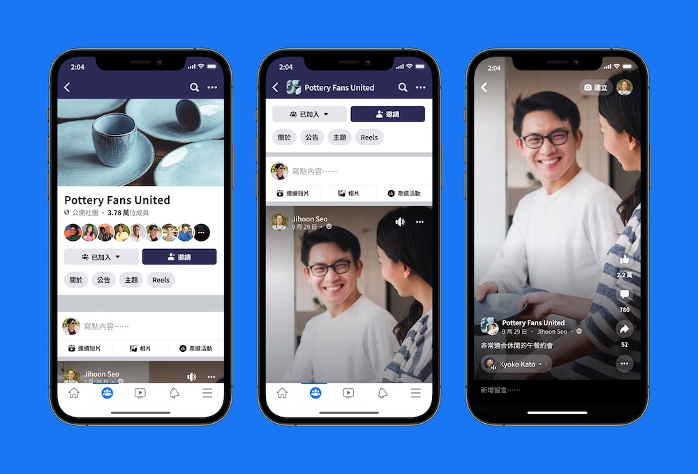 社團是 Facebook 上充滿活力的社群互動空間,創作者現可選擇於社團中發布 Reels,以更有趣、更吸睛的方式與擁有相同興趣的社團好友分享,也讓社團中的交流形式更為多元豐富,促進成員間的互動。