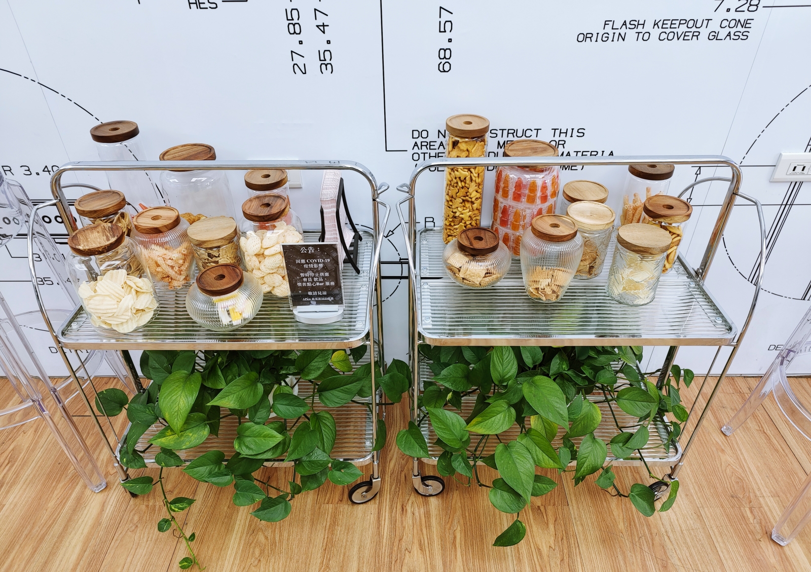 ▼店內設有推車點心吧讓會員享用免費點心零嘴,裝零嘴的容器有多種樣式,看起來就很豐富,一時很想詢問店家這些容器要去哪買。