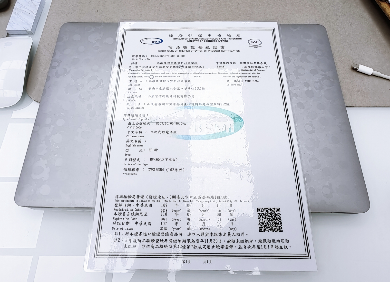 ▼雖然店家更換的電池是副廠電池,但皆為經濟部標準檢驗局認證核可 BSMI 電池,證書上印有”TAF”,也就是同時具有全國認證基金會可靠、客觀、具有公信力的認證,確保消費者在正常使用電池時,安全無虞。