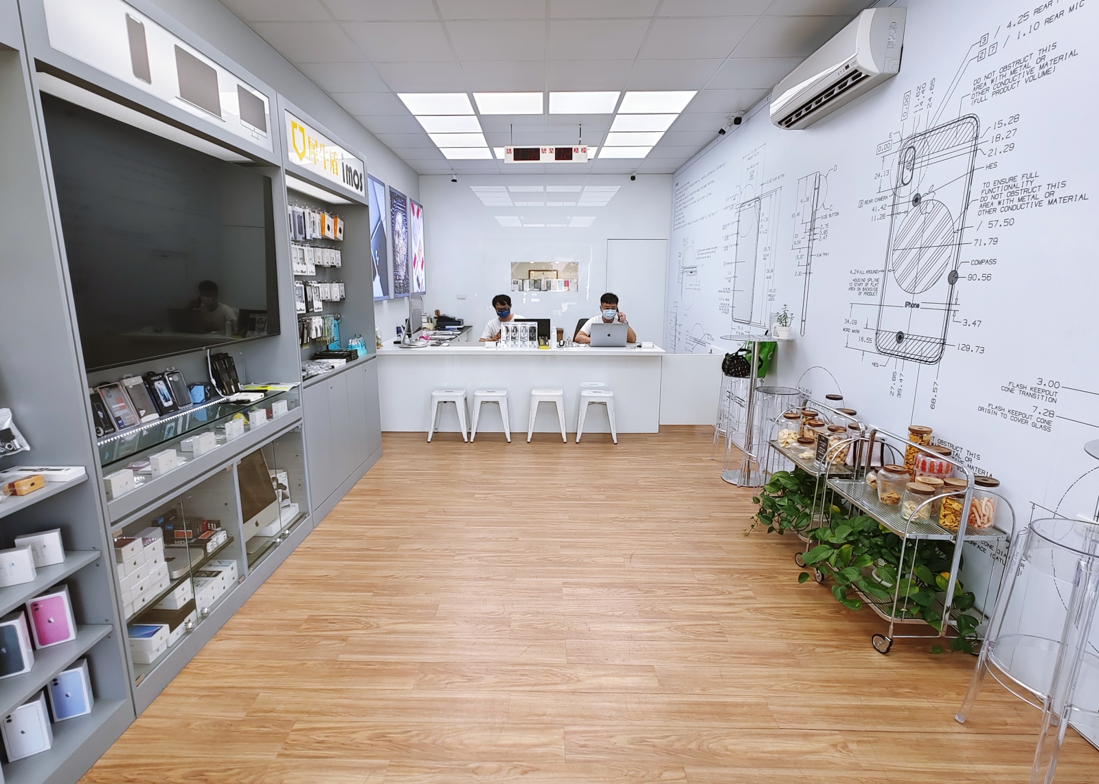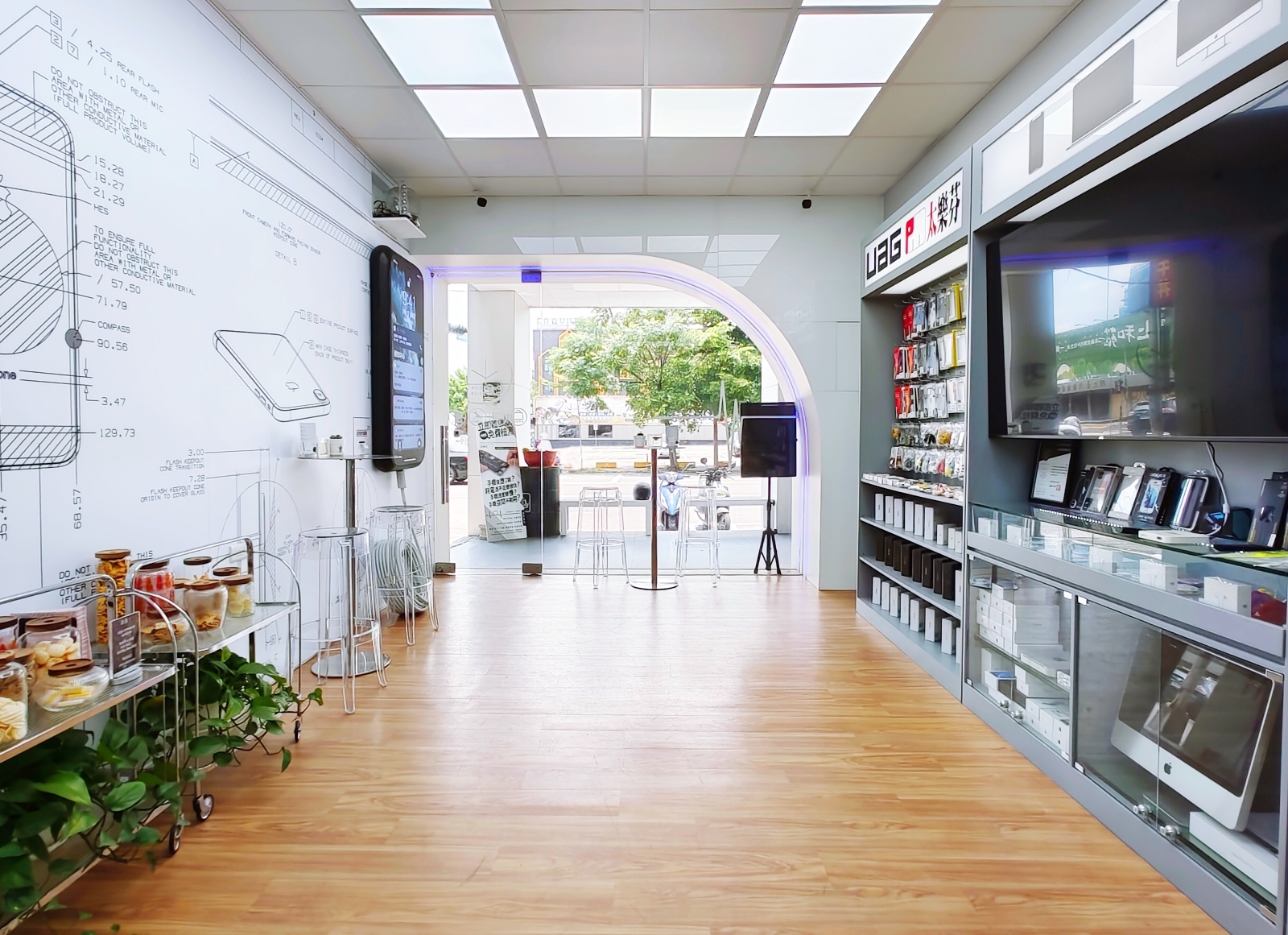 ▼門市內部空間明亮、穿透感好,不會有花俏配色讓視覺感到疲勞,趨近 Apple 極簡風格的元素。大尺寸的電視則供客人等待維修時能稍作休息使用。一般店家內部空間明亮度真的會影響我造訪的意願,電燈要捨得開這點很重要。