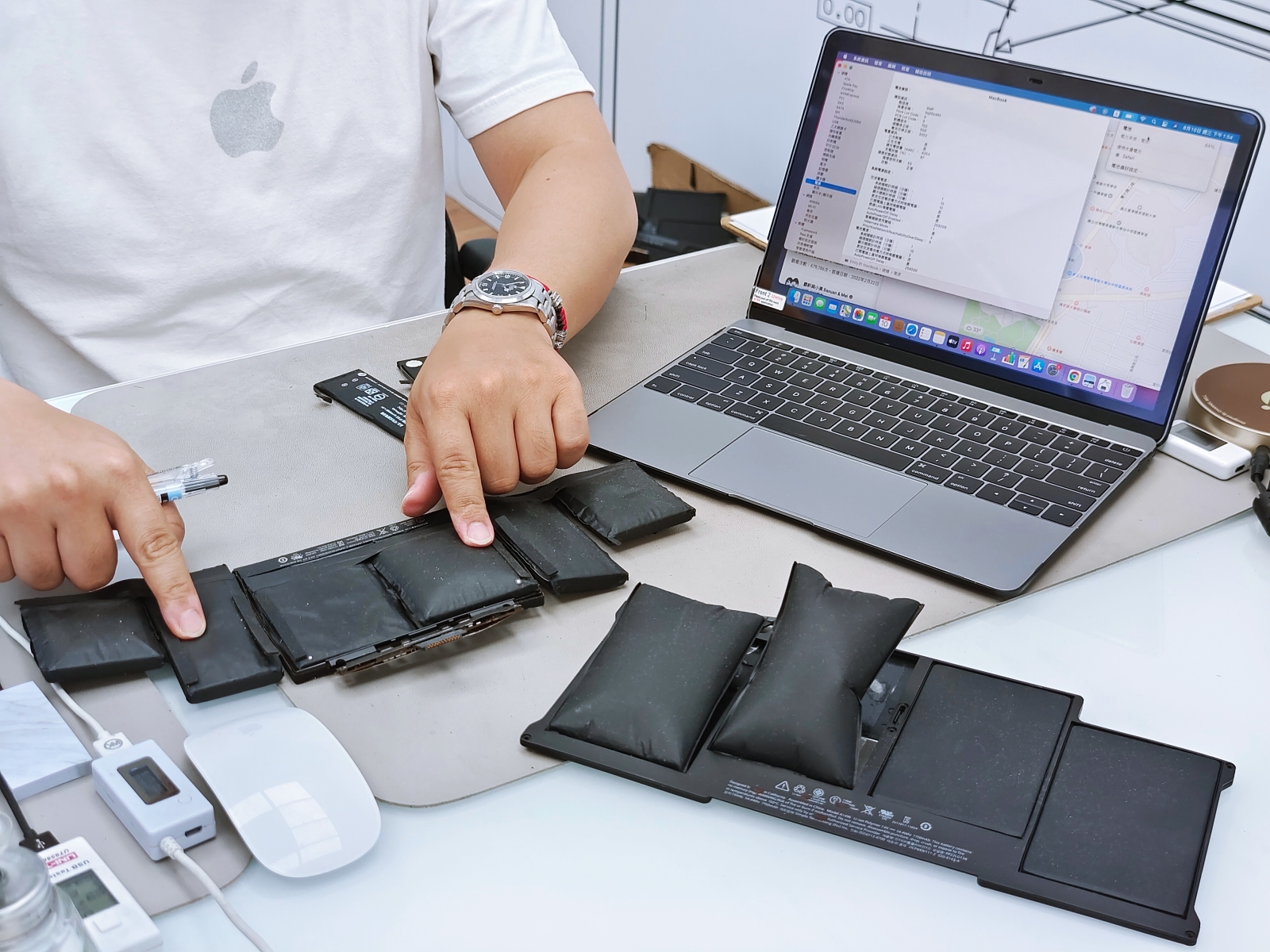 ▼電池膨脹後,就像照片中的模樣,老化的電池會影響到筆電效能、電壓穩定度、進而影響到主機板。當電池有老化的跡象,不要猶豫就換吧!至少再戰個 2-3 年肯定划算。由於需要進行充放電測試,MacBook 電池更換施工時間需要 2-3 個小時,當天更換,當天就能取回。