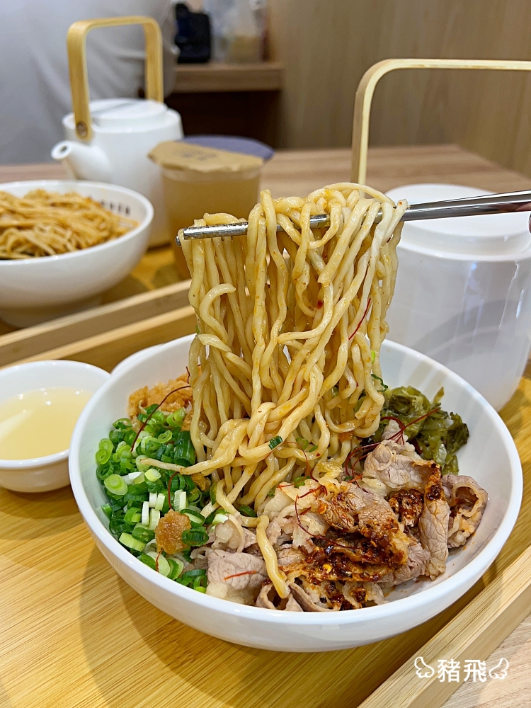 吃法很有趣,要豪邁的把底下麵條往上攪拌翻起,跟配料、醬料均勻混合,然後大口吃下去感受爽脆又多層次的滋味,沒想到乾拌麵也能吃的這樣豪華。記得留下一半的份量倒入雞湯就成了湯麵,瞬間讓麵條變得滑順,大口吃麵大口喝湯,超滿足!