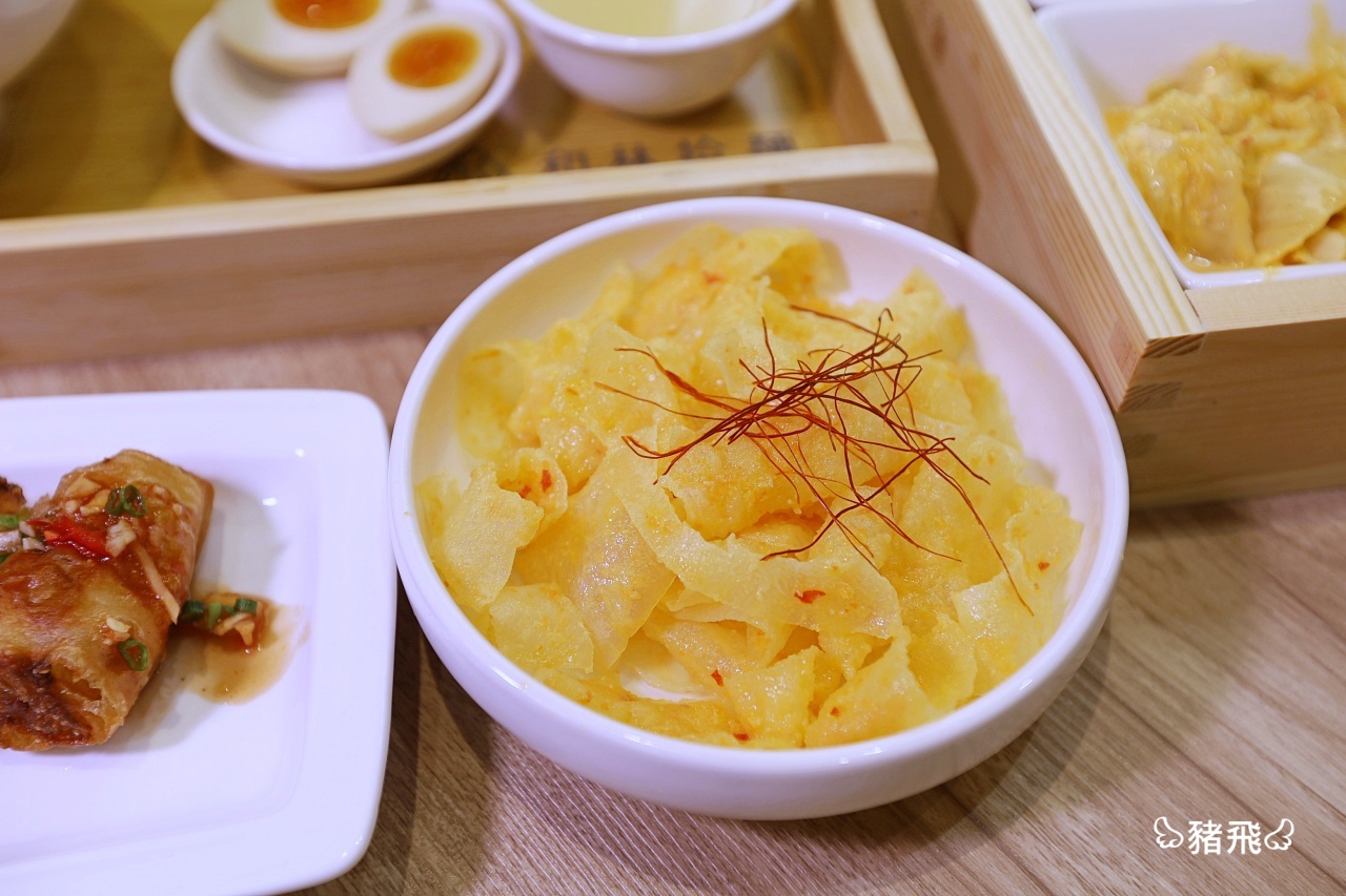 第一次吃到爽脆口感的豬皮,很新鮮!豬皮吸飽醬汁,搭配黃金醬的酸甜滋味,越吃越開胃。