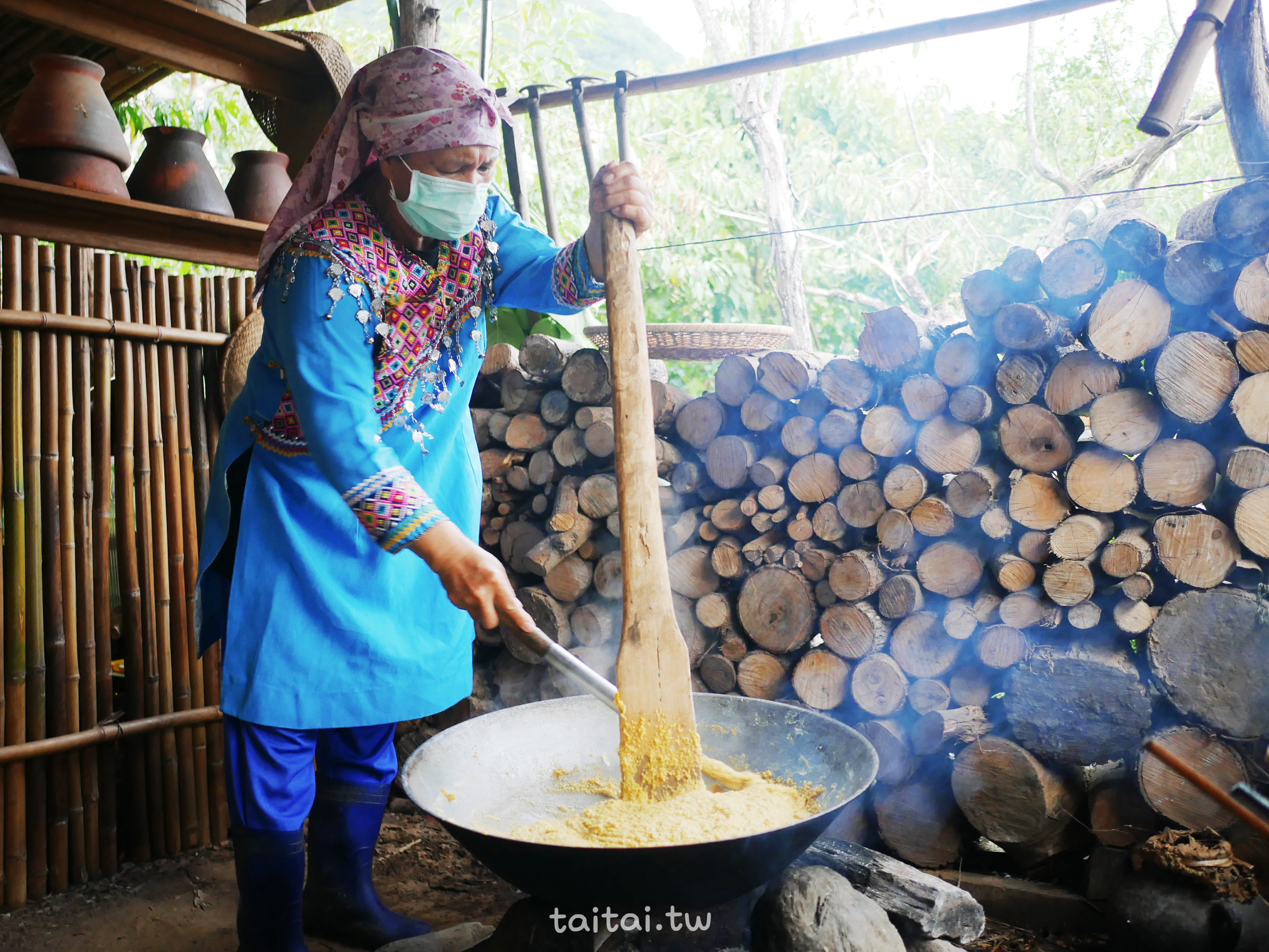 他跟太太依據幾十年前的記憶製作了「小米飯」,布農族的傳統小米飯製作起來很辛苦,煮熟以後還得不斷用杵攪拌拍打、煮成跟麻糬一樣Q彈的口感。一大鍋吃不完,他們邀請部落族人一起分享,結果竟然有一位九十幾歲的老奶奶,因為太想念小米飯的滋味而當場落淚。