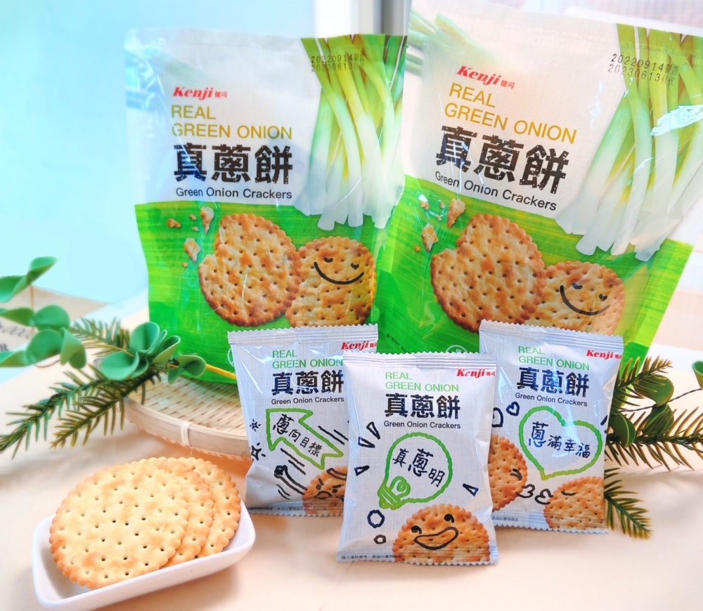Kenji 健司真蔥餅和市面上現有蔥味蘇打餅最大不同,以嚴選鮮蔥揉入餅體、多次來回揉壓,蘇打餅以天然酵母和小蘇打粉發酵,烘烤出食材原有清香,吃得更安心。韓國好市多看中的就是以當日現採台灣產的鮮蔥製作的天然好味道,而且每每到貨一上架就秒殺,原價一包 11,900 韓元,在韓國好市多代購賣到 2 萬多韓元,足見搶手的程度。台灣版本的餅體是圓形、韓國好市多版本餅體是方型,只有形狀設計和大包裝作區隔外,美味相同。