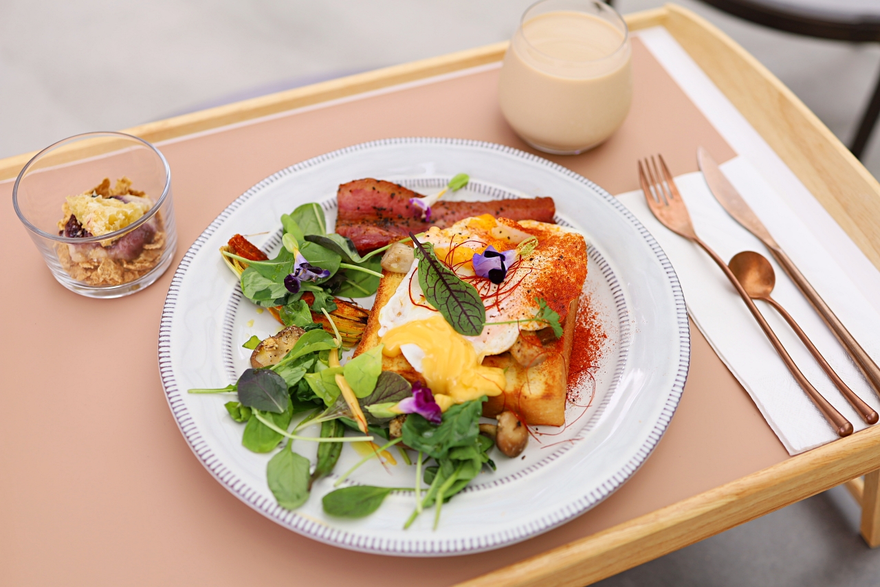擺盤配色很繽紛的早餐完全不輸給專業早午餐店,以輕食的方式配上飲品,份量挺夠的,連漢斯都說吃很飽。