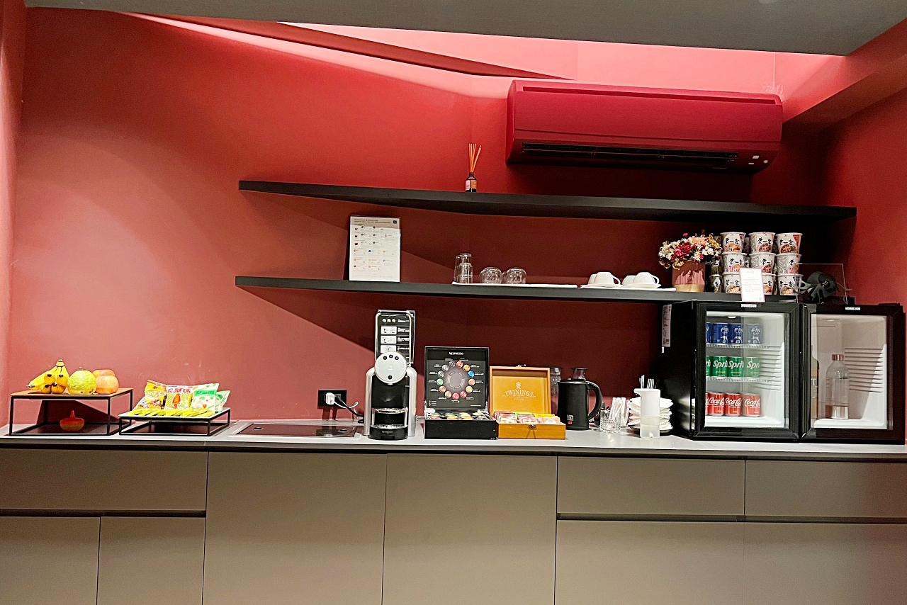 餐廳的最裡面有獨立的VIP區域,提供住客使用,24小時提供免費mini bar,像是小點心、飲料、水果、泡麵可以自由取用。Check in的時候店家會提供迎賓茶(日月潭紅茶),讓拖著行李一陣匆忙的旅客先緩一緩心情,再貼心的講解民宿提供的服務和注意事項,這樣的服務模式完全不輸給飯店。