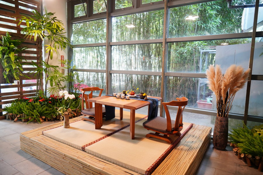 ▼花卉植栽結合日式榻榻米、茶道也很合拍~搭配窗外的竹林整個好有日式風情,也是不少朋友夢想中的居家氛圍!