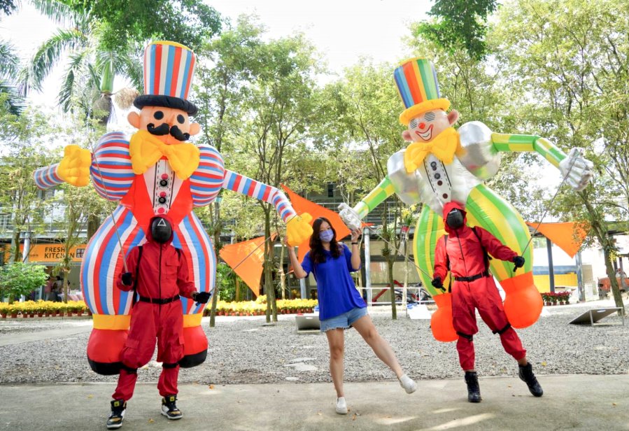 ▼當天剛好是記者會開幕活動,我們還遇到扮成魷魚遊戲的操偶師帶著大型氣球人偶來現場跟民眾互動拍照,整個很促咪啊!