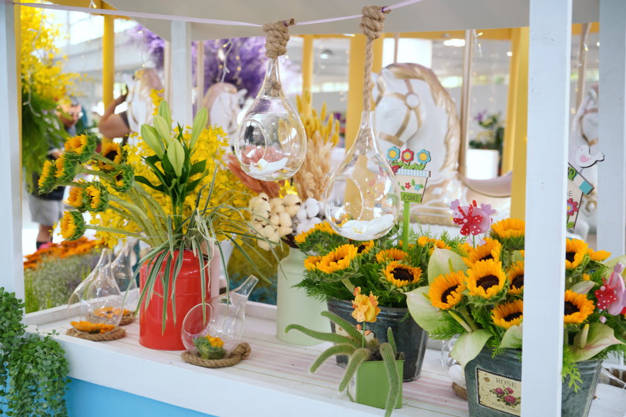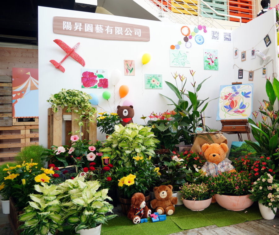 ▼這一區則是結合氣球、飛機、插圖、小熊玩偶等元素,搭配各種花卉園藝,營造出童趣感!