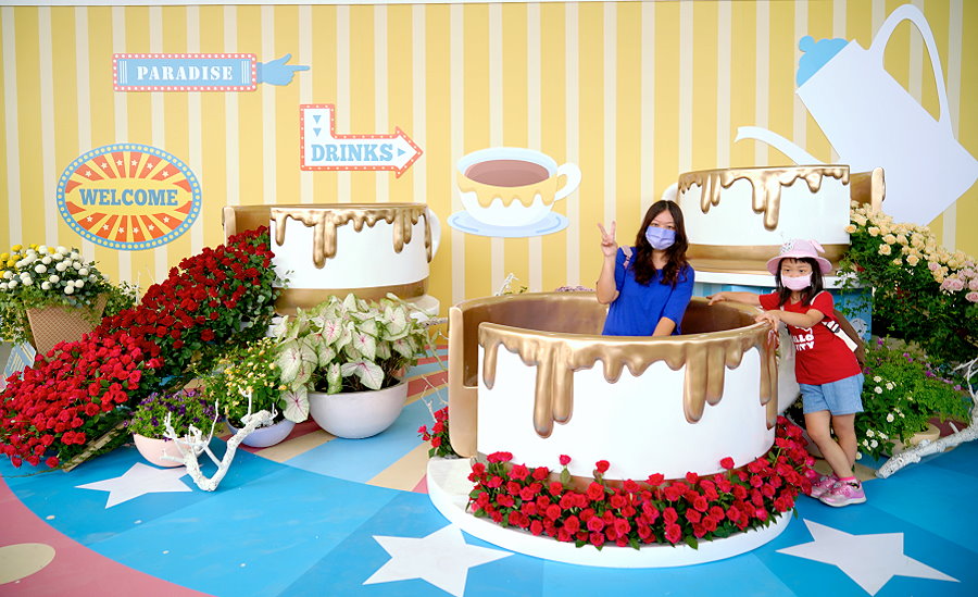 ▼遊樂園常見的咖啡杯也被移到會場來啦~沒想到驚險刺激的咖啡杯在這裡幻化成美麗的舞台,繽紛多彩的玫瑰花從咖啡杯流瀉而成,看起來更增添不少浪漫氣息~