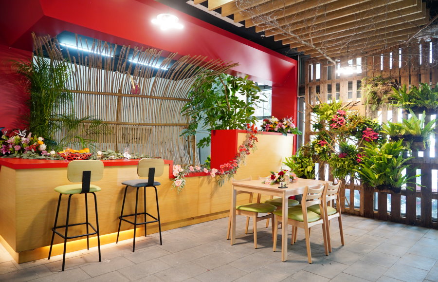 ▼另外一區則是將綠意結合高腳椅、餐桌椅,用餐起來也能放鬆心情~